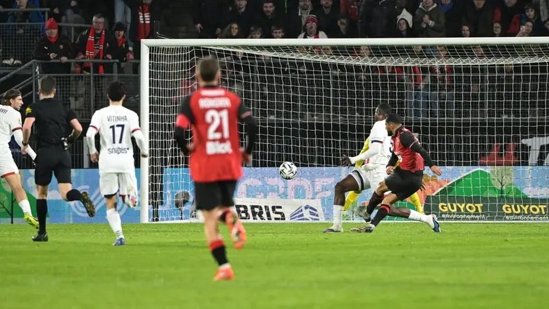 وكشّر رين عن أنيابه سريعا حين سدد إيستيبان ليبول كرة من داخل المنطقة ارتدت من القائم الأيمن للمرمى (6)، ردّ سان جيرمان كان ضعيفا بتصويبة ديزيريه دويه التي أمسكها الحارس بريس سامبا (12).