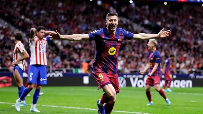 اقترب برشلونة خطوة كبيرة من التتويج بلقب الدوري الإسباني لكرة القدم بفوز ثمين خارج ملعبه على أتلتيكو مدريد بنتيجة 2 – 1 يوم السبت في قمة منافسات الجولة الثلاثين من المسابقة.