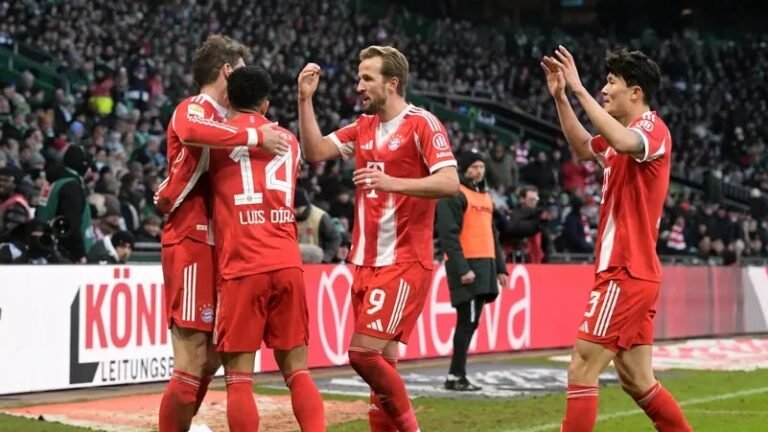 أحرز هاري كين هدفين ليقود بايرن ميونيخ متصدر دوري الدرجة الأولى الألماني لكرة القدم، للفوز 3-صفر على مضيفه فيردر بريمن يوم السبت، ليحافظ على صدارته بفارق ست نقاط.