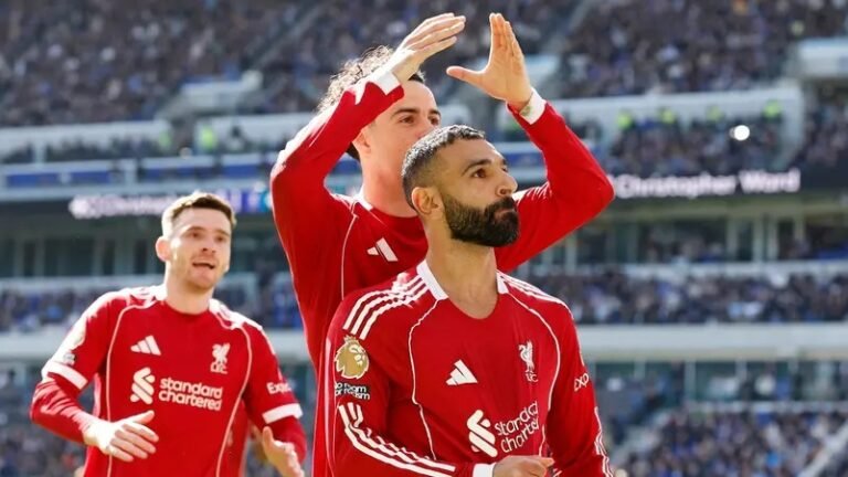 تقدم صلاح بهدف لفريقه ليفربول عند الدقيقة 28، ليعادل ستيفن جيرارد كأكثر من سجل في ديربي ميرسيسايد بالدوري برصيد تسعة أهداف لكل منهما.