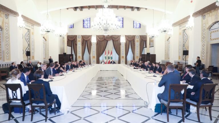 عقد رئيس مجلس الوزراء نواف سلام في السراي الحكومي اجتماعاً مع وفد اقتصادي فرنسي يمثّل المؤسسات الاقتصادية والشركات الفرنسية التي تعنى بشؤون إعادة الإعمار وتحديث المدن برئاسة رئيس مؤسسة “ميديف” جيرار وولف، وبحضور وزير الاقتصاد والتجارة عامر البساط والسفير الفرنسي هيرفي ماغرو..